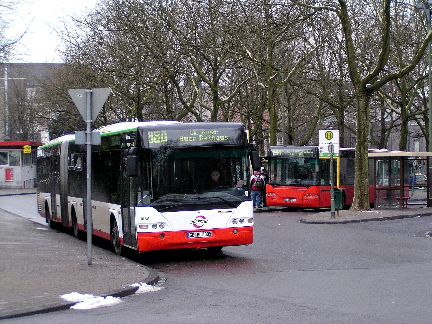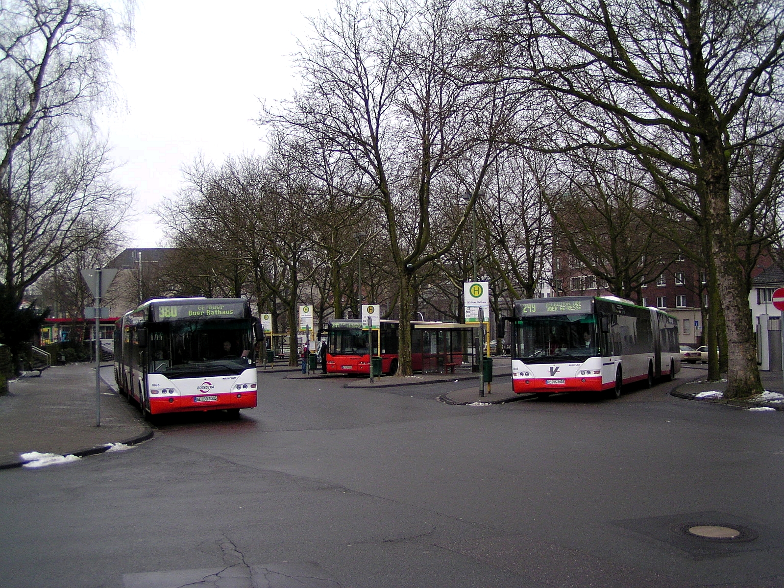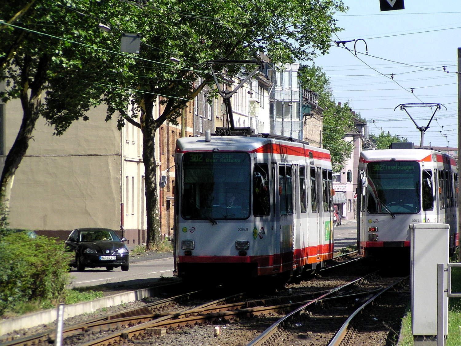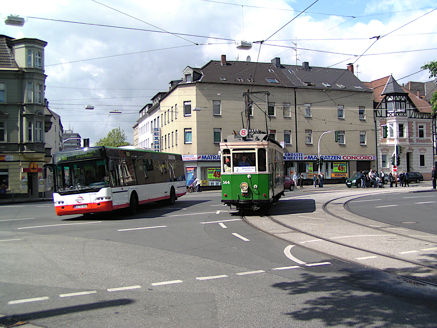 Ringstraße, Ecke Hauptstraße Links: NEOPLAN Centroliner N 4416 Rechts: TW 144 Essener Verkehrs AG (Ex Vestische)