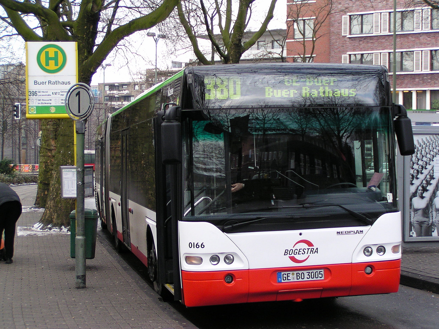 Haltestelle ‚Grillogymnasium‘ vor dem Betriebshof der Bogestra NEOPLAN Centroliner N 4416 (0005 / GE HE 125)