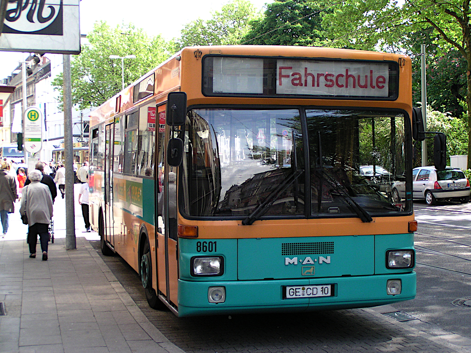 Haltestelle ‚Grillogymnasium‘ vor dem Betriebshof der Bogestra MAN SL 202 (8601 / GE CD 10) Fahrschulwagen