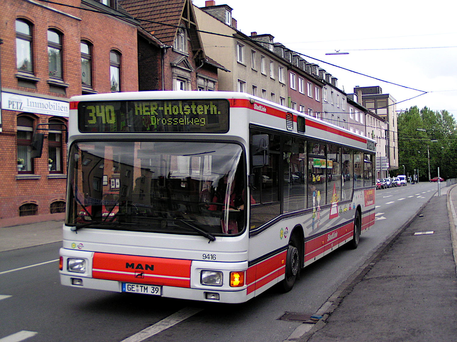 Steeler Straße, Einmündung Achternbergstraße MAN NG 272.2 (9268 / GE LX 85), vorm EN UL 152; EZ 1992