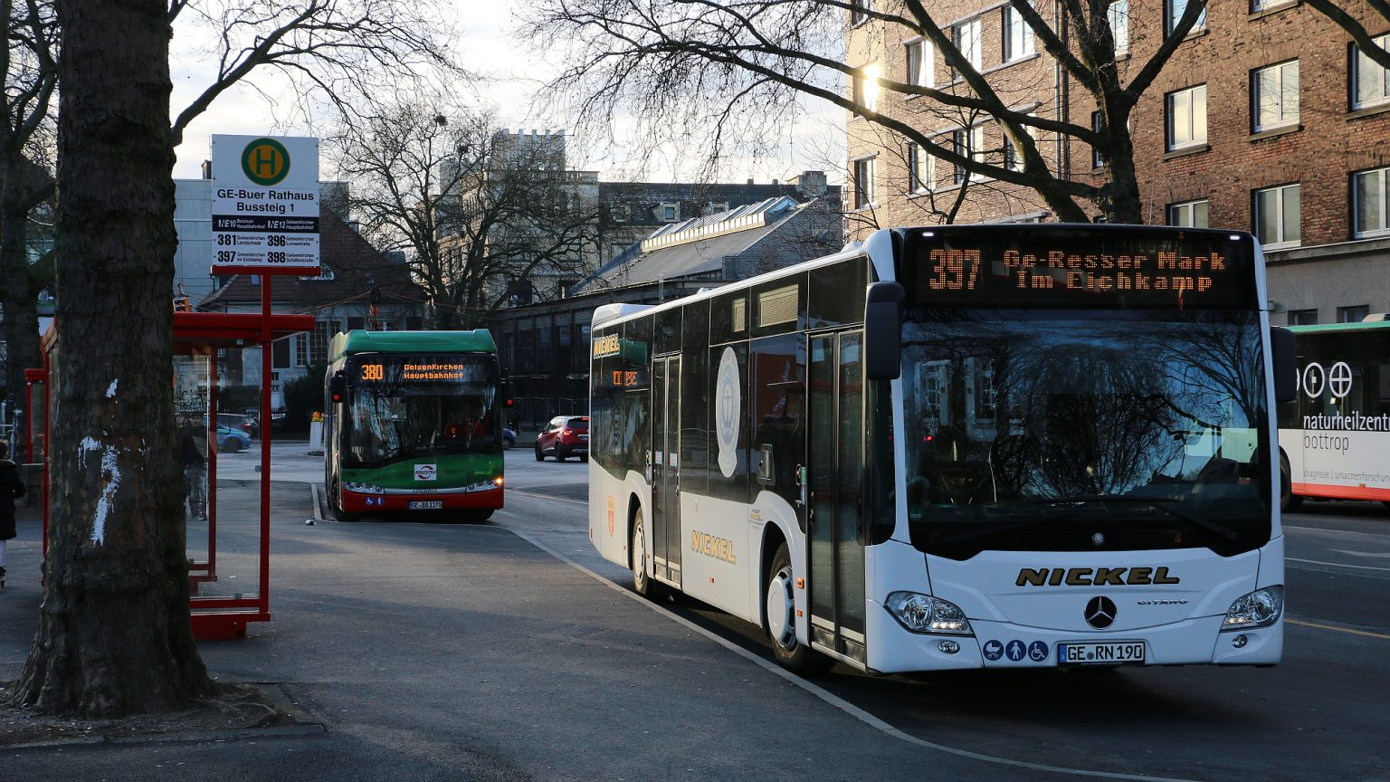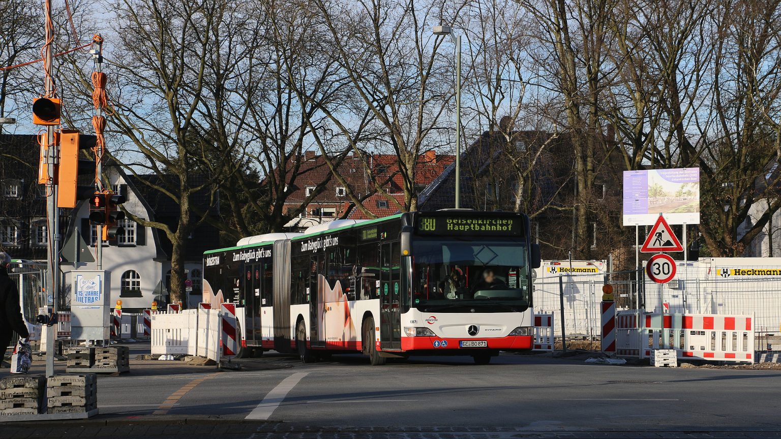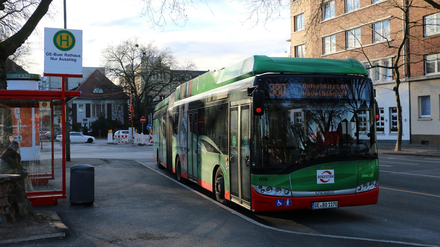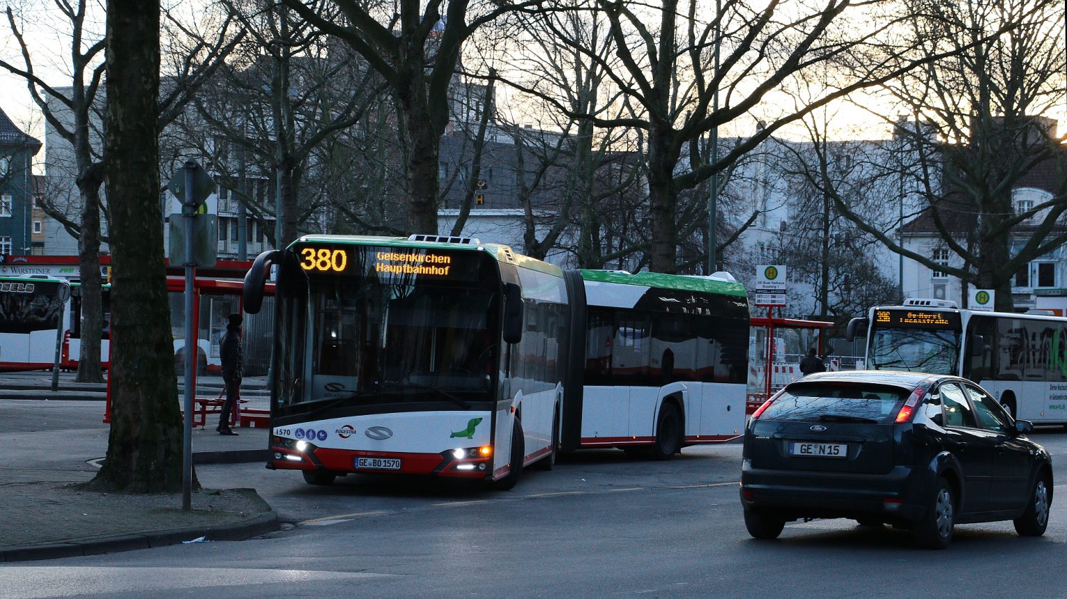 20.01.2017Gelsenkirchen-BuerBuer Rathaus, Bus und Straßenbahn