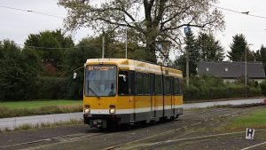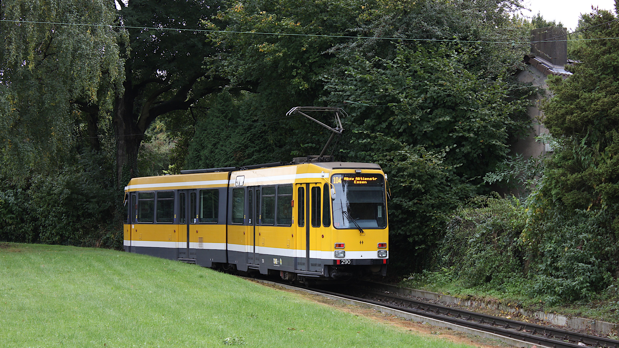 26.09.2012  Mülheim / Ruhr     Haltestelle Hauptfriedhof    Wagen 290 (DÜWAG M6D) auf der Linie 104 MH Hauptfriedhof – Stadtmitte – Grenze Borbeck – Essen Abzweig Aktienstraße
